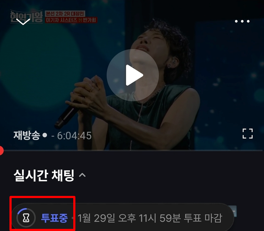 3.나우 앱에서 '현역가왕'을 검색 후 라이브 화면에 접속합니다